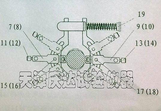 d)压紧夹紧手柄19使测量支架涨开,将上测量支架3安装在试件的上标距点,下测量支架4安装在时间的下标距点;